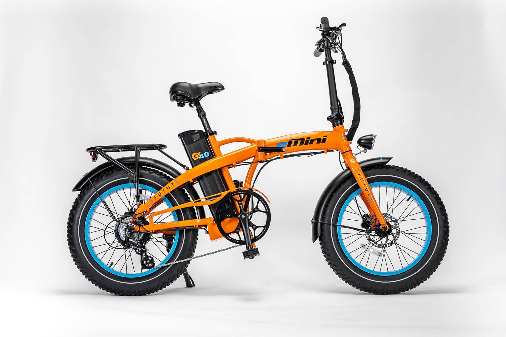 eMini GT40 er bygget med aerodynamisk stel og store fatbike dæk – desuden er den udstyret med 48V batteri og el-system. eMini GT40 kan foldes sammen, og er derfor let at tage med på ferie. Batteriet kan let afmonteres, og tages med ind for at lade – det bliver ikke meget lettere. Elcyklen har en rækkevidde på 40-60km med standard batteri – dette afhænger dog af forskellige faktorer. Cyklen er udstyret med front lys, Shimano gear og 20″ Fatbike dæk. Indstigningshøjden er 67cm.